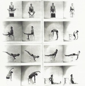 Sur les tapis, l’exécution est un poil plus anarchique. Aujourd’hui, les deux pieds qui tremblottent sur le coussin, c’est toute une histoire de plier les genoux, lever les bras, baisser les bras. Garder l’équilibre, quand le sol se dérobe sous vos pieds, c’est une question d’entrainement. Le Pilates, la méthode que Joseph s’est d’abord appliqué à lui même, ça sert à rester debout.