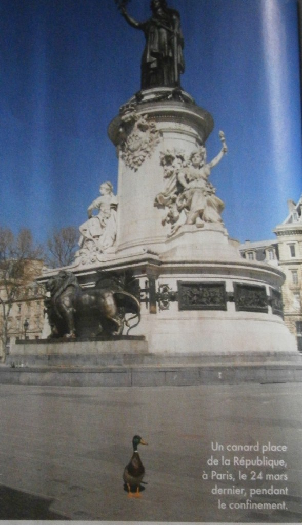Par les temps qui courent, ce sont les hommes qui sont en cage et les animaux qui se promènent dehors. Il en profitent pour explorer les villes : mon journal favori montre la photo hilarante d’un canard qui prend la pose place de la République, dans un Paris désert. Il paraît qu’il y a des chèvres dans les centres villes du pays de Galle, des cerfs à Nara au Japon, un puma à Santiago du Chili. Sur les réseaux sociaux, les confinés de tous les pays s’émerveillent des gazouillis entendus dans les rues. Vinciane Despret, philosophe des sciences, explique qu’en l’absence des autos, les oiseaux ont « le champ libre et le chant libre ». Et qu’aussi nous sommes plus attentifs. A la fenêtre, nous prenons conscience de ce que le monde est devenu.